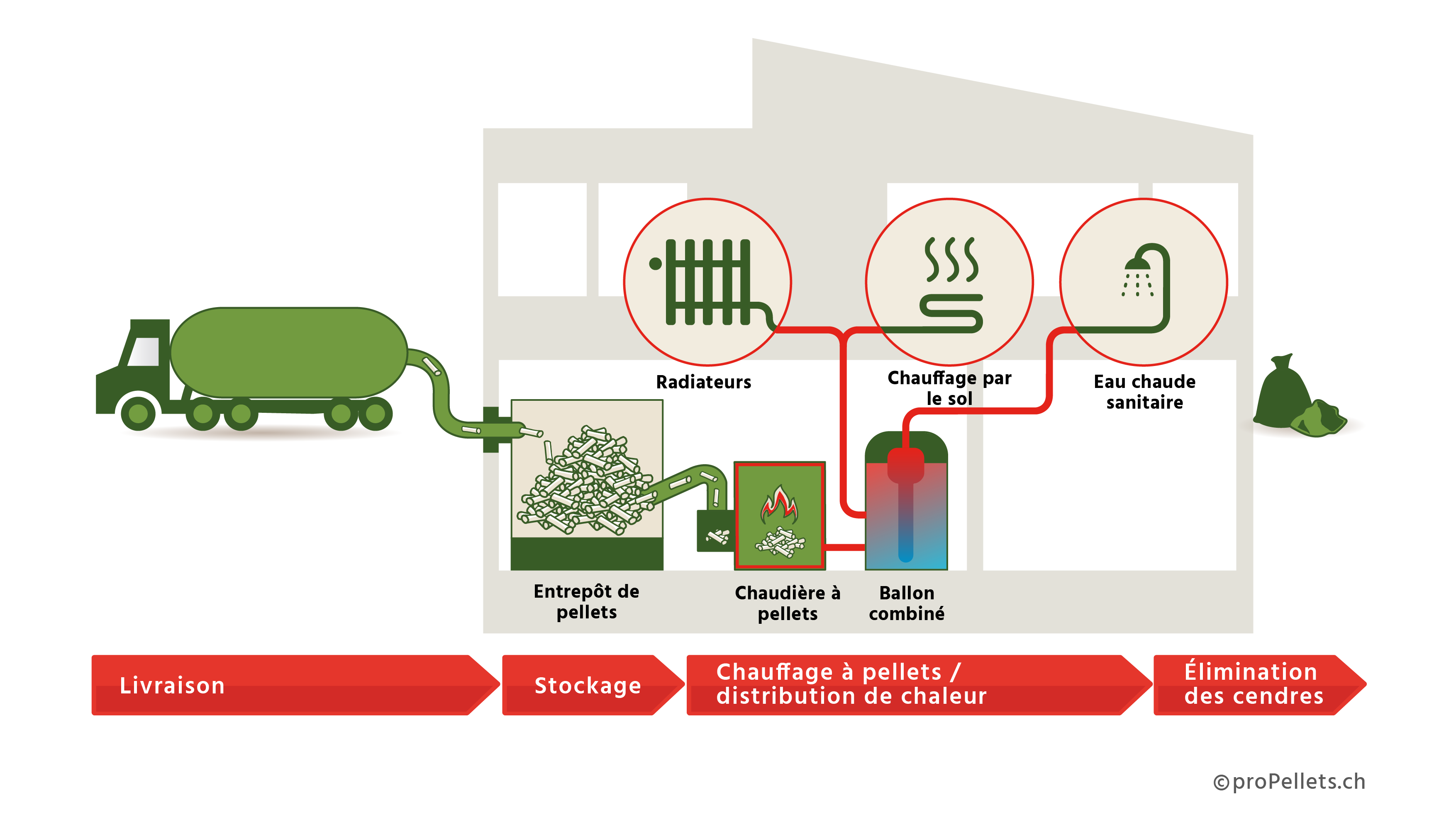Les solutions de chauffage disponibles de nos jours impliquent des technologies novatrices et des sources d’énergie modernes et renouvelables telles que les granulés de bois. Une chaudière à granulés brûle les résidus de bois transformés en pellets en mode automatique et faible en émissions. Elle peut également être contrôlée et réglée via un smartphone. Lisez les pages suivantes pour en savoir plus sur le remplacement de votre ancien système de chauffage et le passage aux granulés de bois.