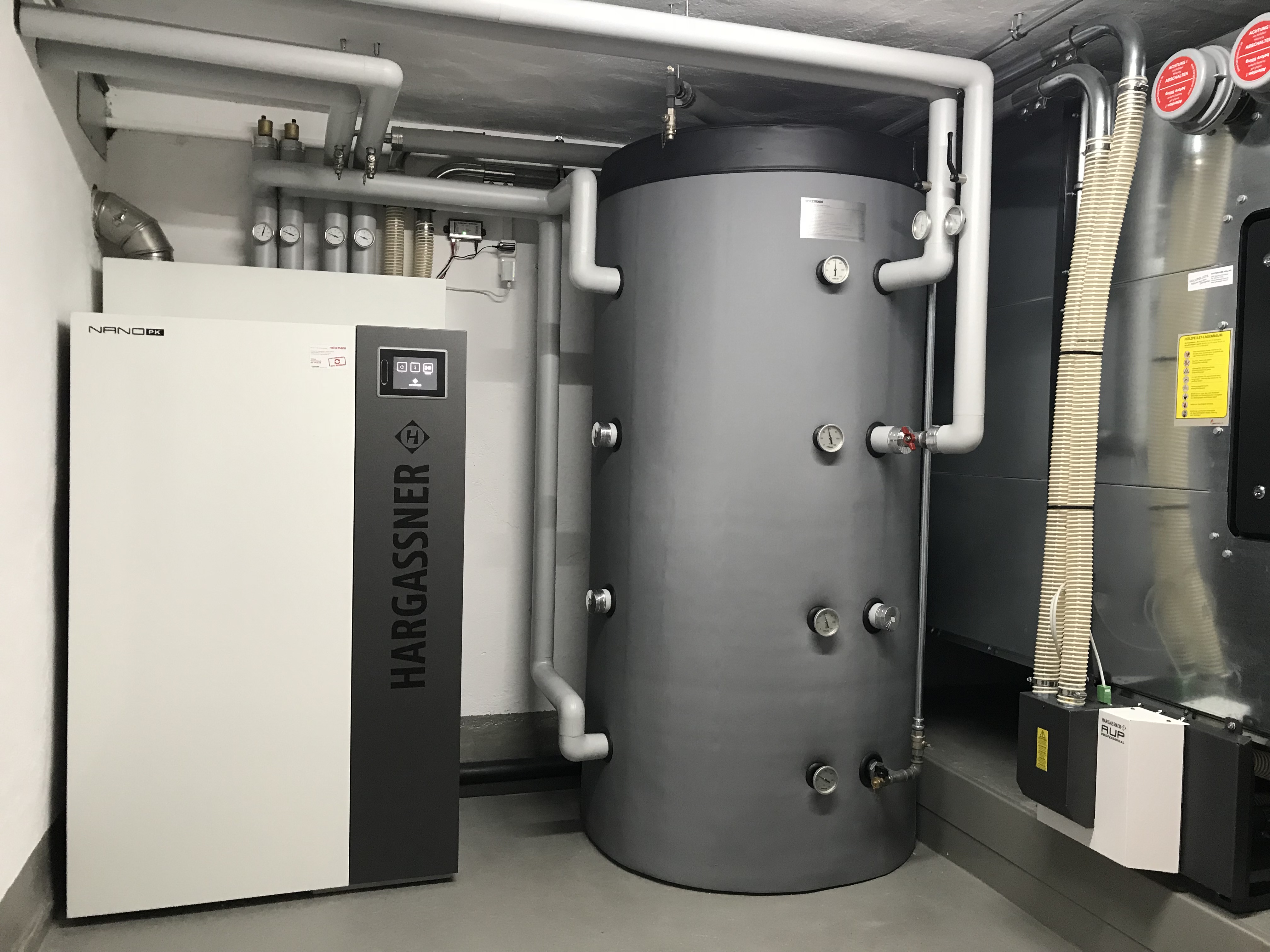 Der Ölkessel aus dem Jahr 1986 war der Bauherrschaft durch den Lärm und den Ölverbrauch sofort ein „Dorn im Auge“. Da das Wohngebiet sehr ruhig ist, hörte man die Heizung dauernd einschalten. Nach dem ersten Winter wurde eine Pelletheizung von ÖkoFEN eingebaut. Im Öltankraum konnte ein Pellets-Fertiglager eingebaut werden. „Jetzt habe ich sogar noch einen Meter Abstellfläche gewonnen“, freut sich der Hausbesitzer.
