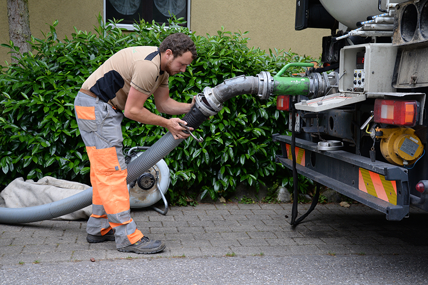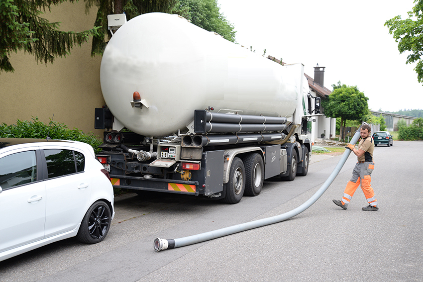 Um die Leitung vom Fahrzeug zum Lager zu legen, wird der Befüllschlauch verlegt. Diese Befülleitung sollte eine Länge von max. 30 m nicht überschreiten. Ist dies der Fall, sollte das vor der Lieferung mit dem Lieferanten besprochen werden.
