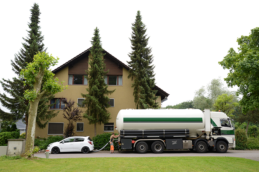 Je nach Länge des Befüllschlauchs dauert eine Lieferung von 5 Tonnen Pellets zwischen 0.5 und 1 Stunde. Während dieser Zeit sollte der Lastwagen niemanden behindern.