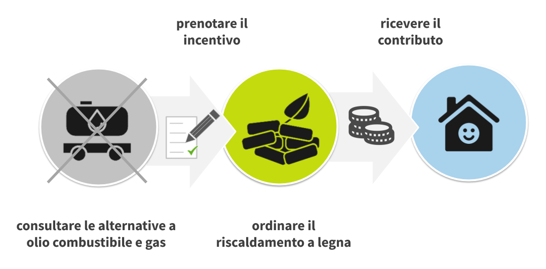 Buona parte dei Cantoni promuove l’installazione di impianti di combustione a legna mediante contributi di incentivazione e quasi tutti concedono agevolazioni fiscali per l’installazione in un secondo momento (risanamento). Anche Comuni e fornitori di energia sostengono la sostituzione degli impianti di riscaldamento.